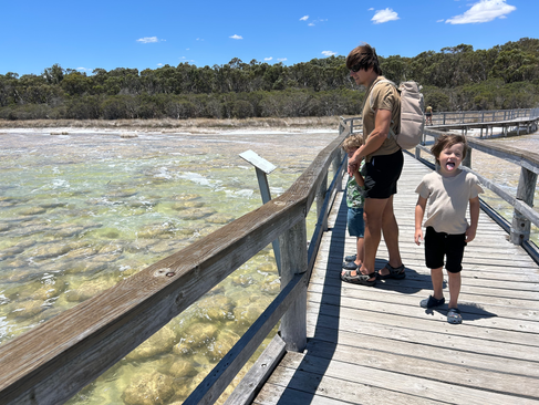 Järjepidevalt avastame edasi loodusimesid. Esiteks käisime eile Clifton järve tromboliite vaatamas. Tromboliidid on ühed vanimad palja silmaga nähtavad elu struktuursed jäljed Maal. Need on mikroobikoosluste (sh tsüanobakterite) poolt moodustatud lubjakivised "munad". Cliftoni järve tromboliidid on ka praegu „elus“ selles mõttes, et nende munade pinnal elavad mikroobid, mis fotosünteesivad, sadestavad kaltsiumkarbonaati ja ehitavad seeläbi tromboliiti väga aeglaselt edasi. Nii sain mina aru. Ent selle „muna“ kasvukiirus on inimese eluea jooksul praktiliselt märkamatu. Cliftoni järv Austraalias on ainulaadne paik, kus saab oma silmaga näha, milline nägi välja üks Maa varajastest eluviisidest.